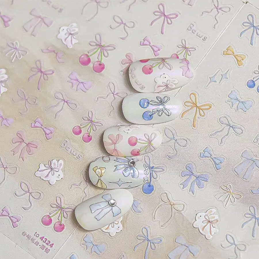 Thin Flexible Nail Art Stickers Ins Explosive Children's Nail Stickers Pink Knot Shanghai Jasmine Stickers