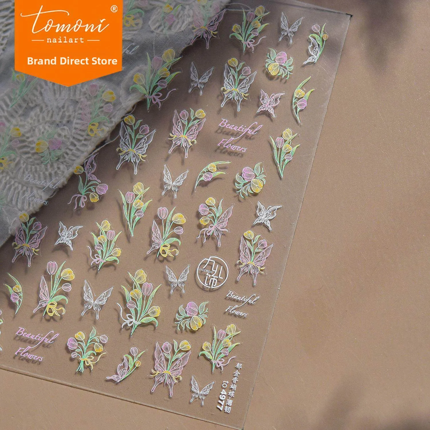 Romantic Nail Art Stickers Thin Flexible Handmade Tulip Design Nail Decals for Spring Season Nail Art Accessories