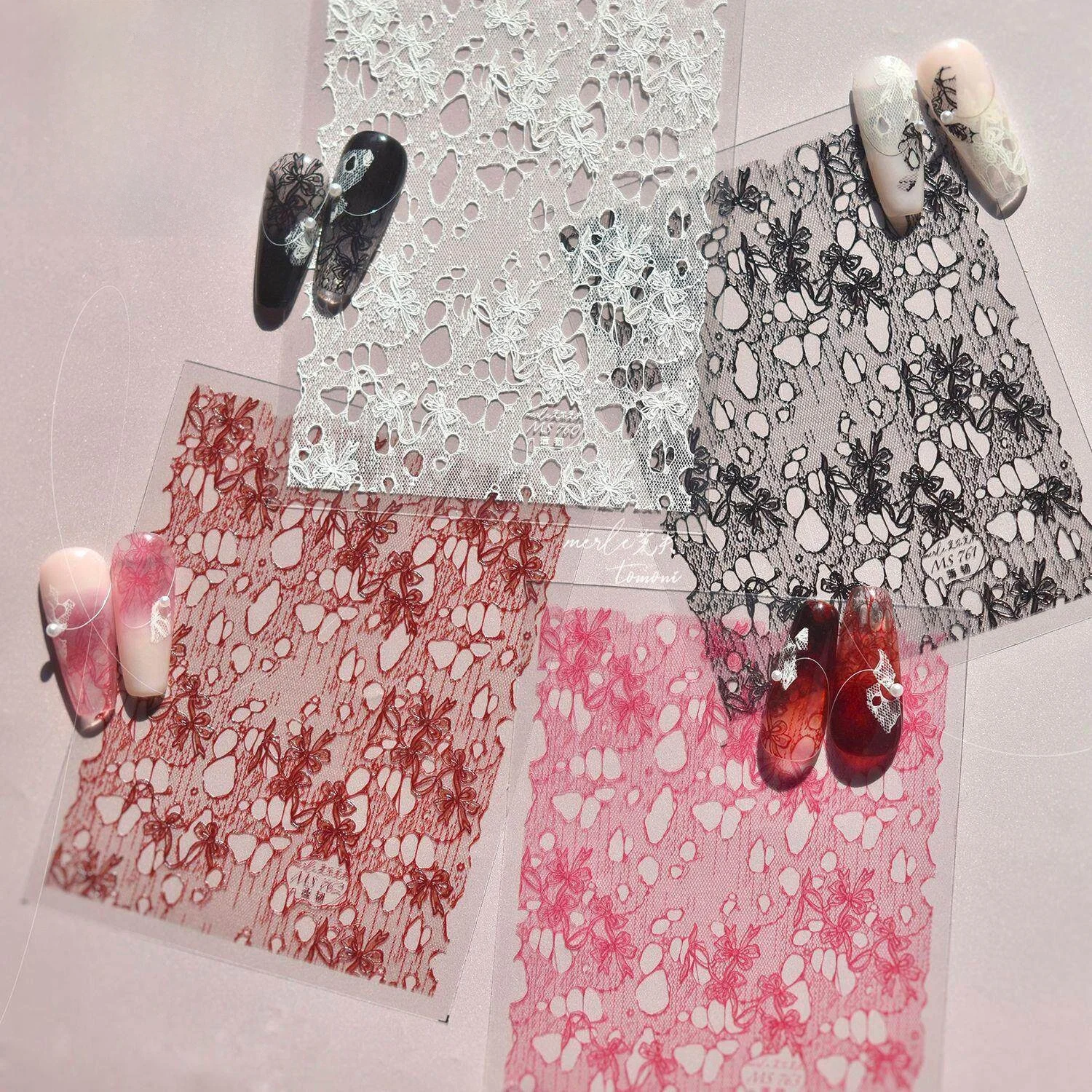 Thin Flexible Nail Art Stickers Collaborative Lace Knot Design Japanese Style Stationery for Men's Fashion Autumn S...