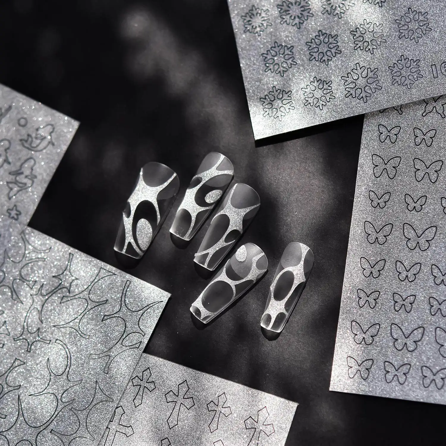 Bright Sequin Nail Art Stickers Hollow out Design Japanese Style Shiny Star Pattern Nail Decorations for Men