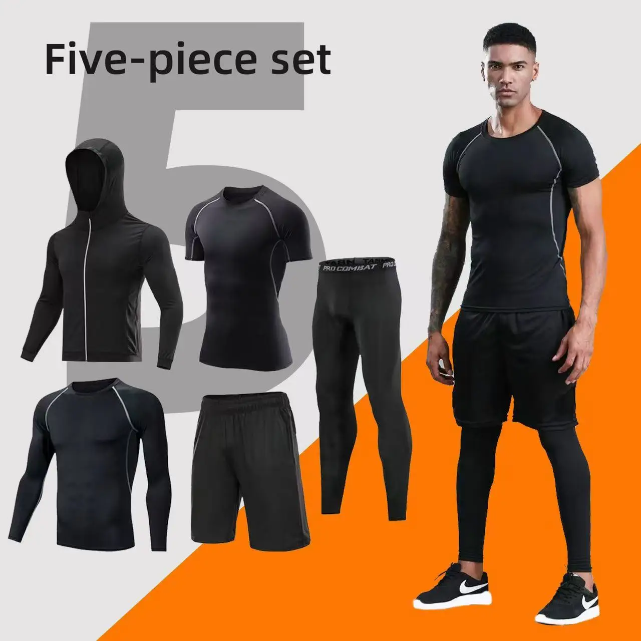 Men's 5 Piece Compression Workout Set Quick Dry Breathable Gym Sportswear Tracksuit for Running Fitness Training for Men