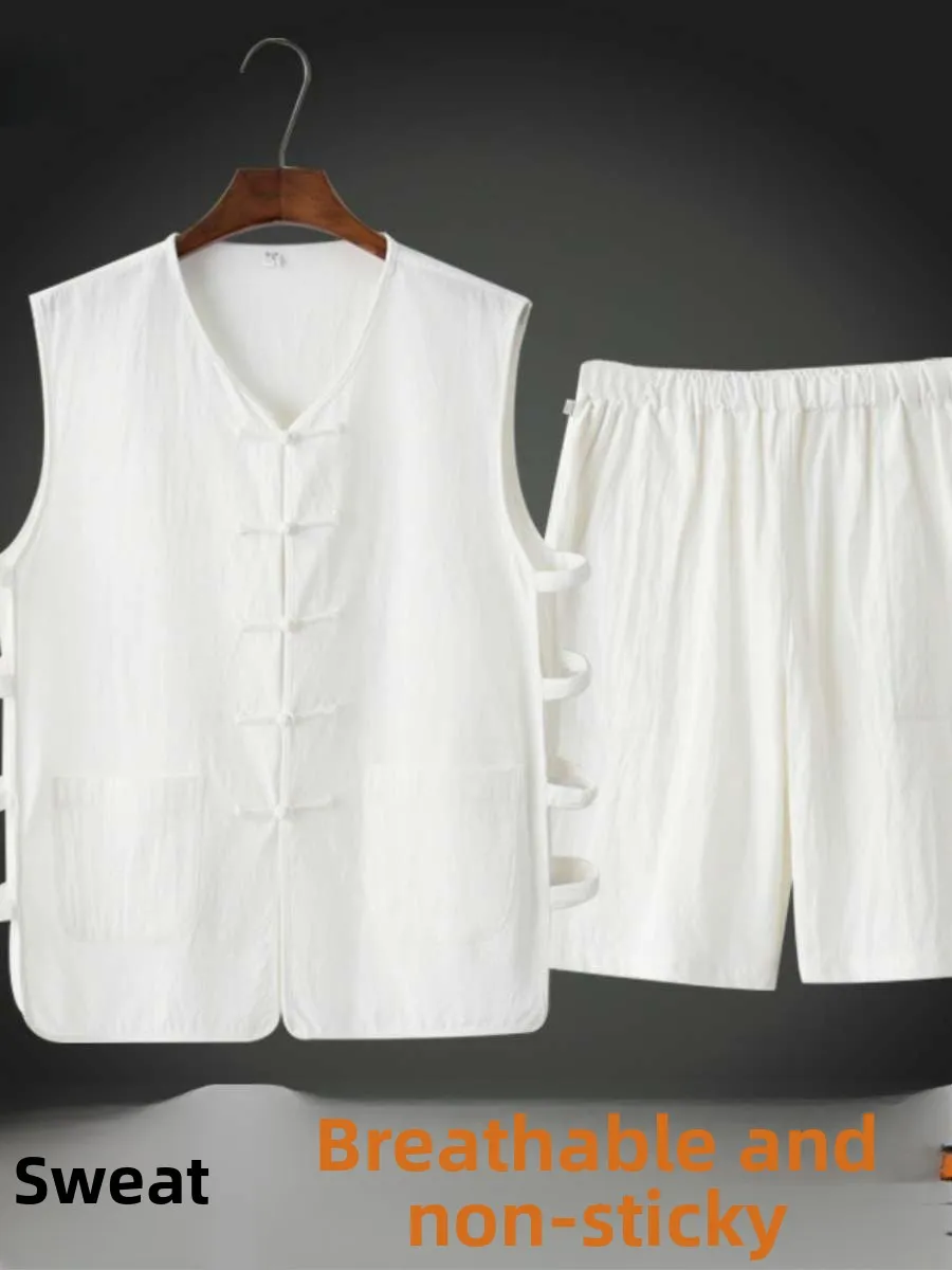 Men's Summer Casual Beijing Sle Svel Vest Breathable Sweatirt Absorbent Tang Suit Set Comfortable Loose Fit Top