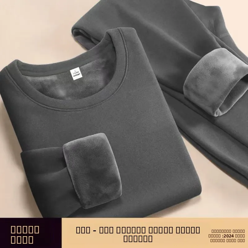 Thickened Fleece Warm Underwear Set for Men Casual Long Sleeve T-Shirt And Long Pants Winter Collection Youth Polyester Fiber