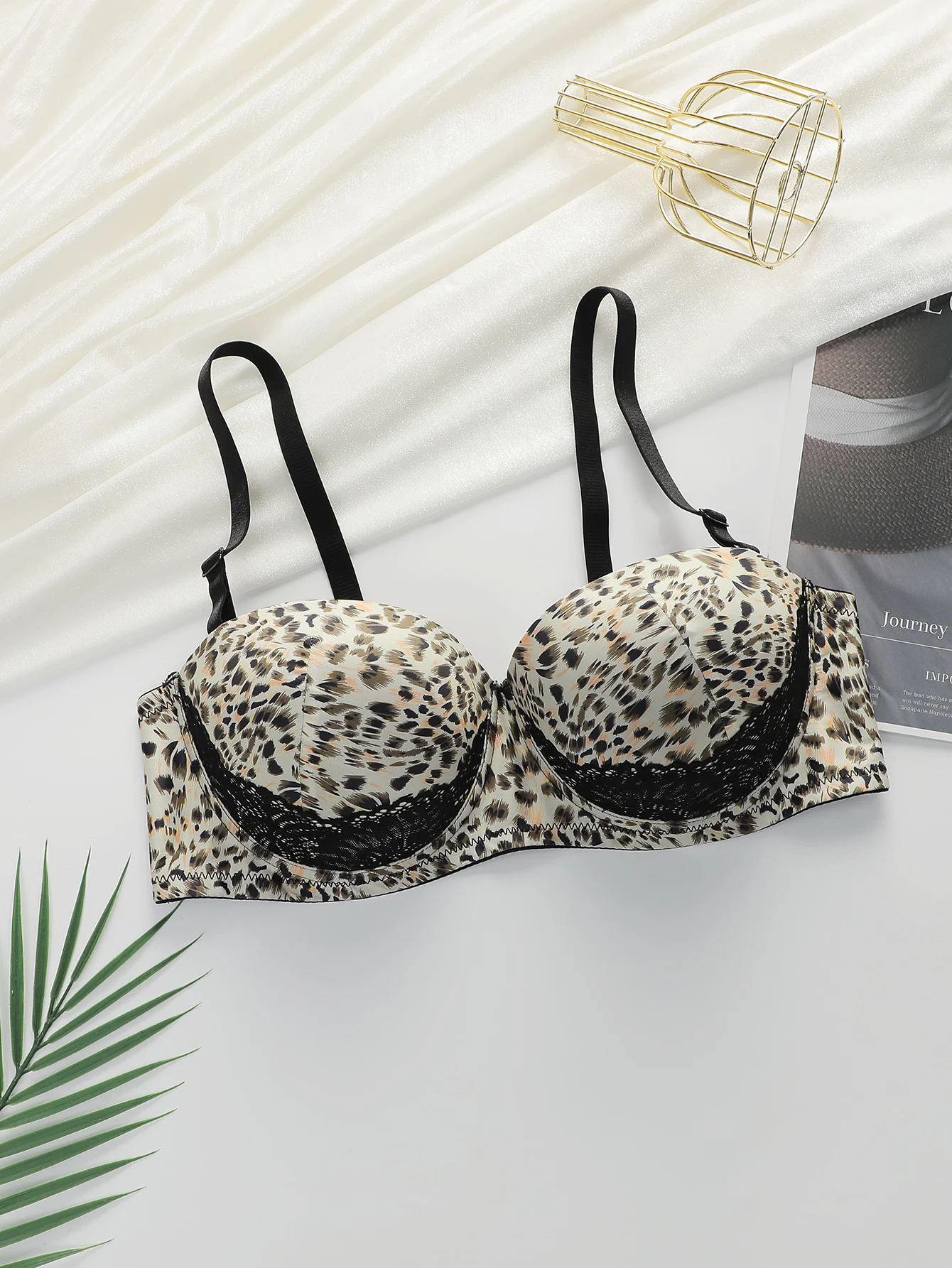Women's Sexy Leopard Print Lace Bra with Steel Ring Gathered Push-Up Adjustable Straps Comfortable Fitting B2463
