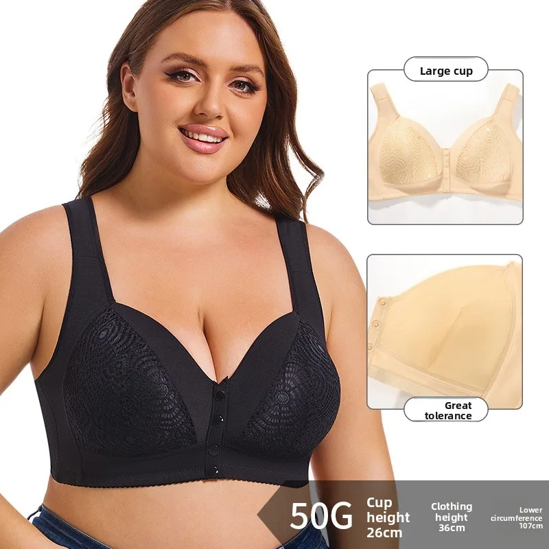 Plus Size Bra A-G Cup 34-50 Front Closure Lace Underwire Full Coverage Comfort Wireless Vest