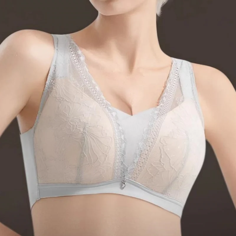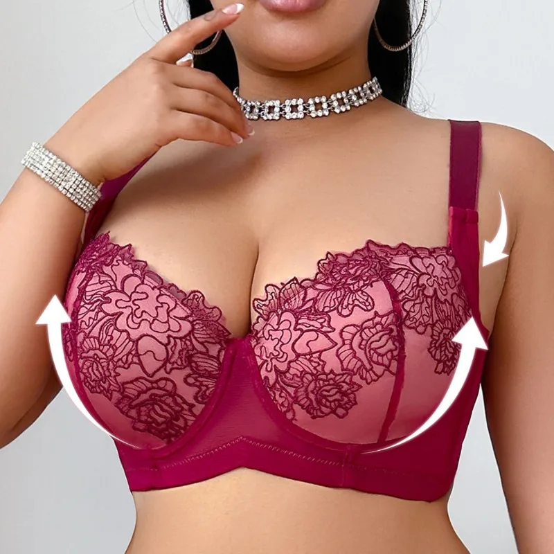 Plus Size Wide Strap Bra Full Coverage for C/D/E/F Cup Ultra Thin Lace Embroidery Bra Comfortable Support Underwire Underwear
