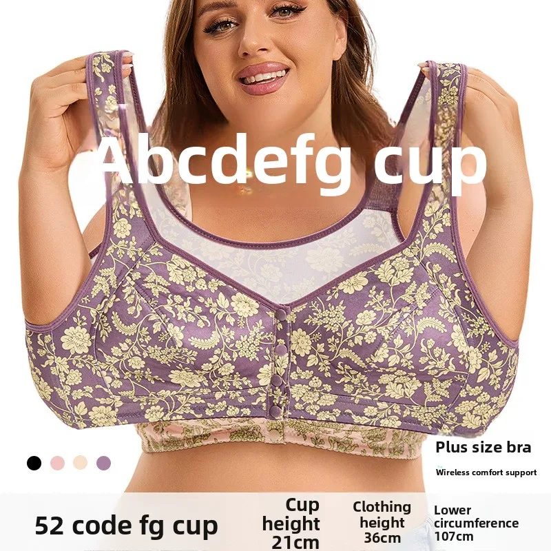 Plus Size Bralette A-G Cup, Front Closure Wireless Full Coverage Bra 36-48, Printed Seamless Comfort Bra for Large Bust