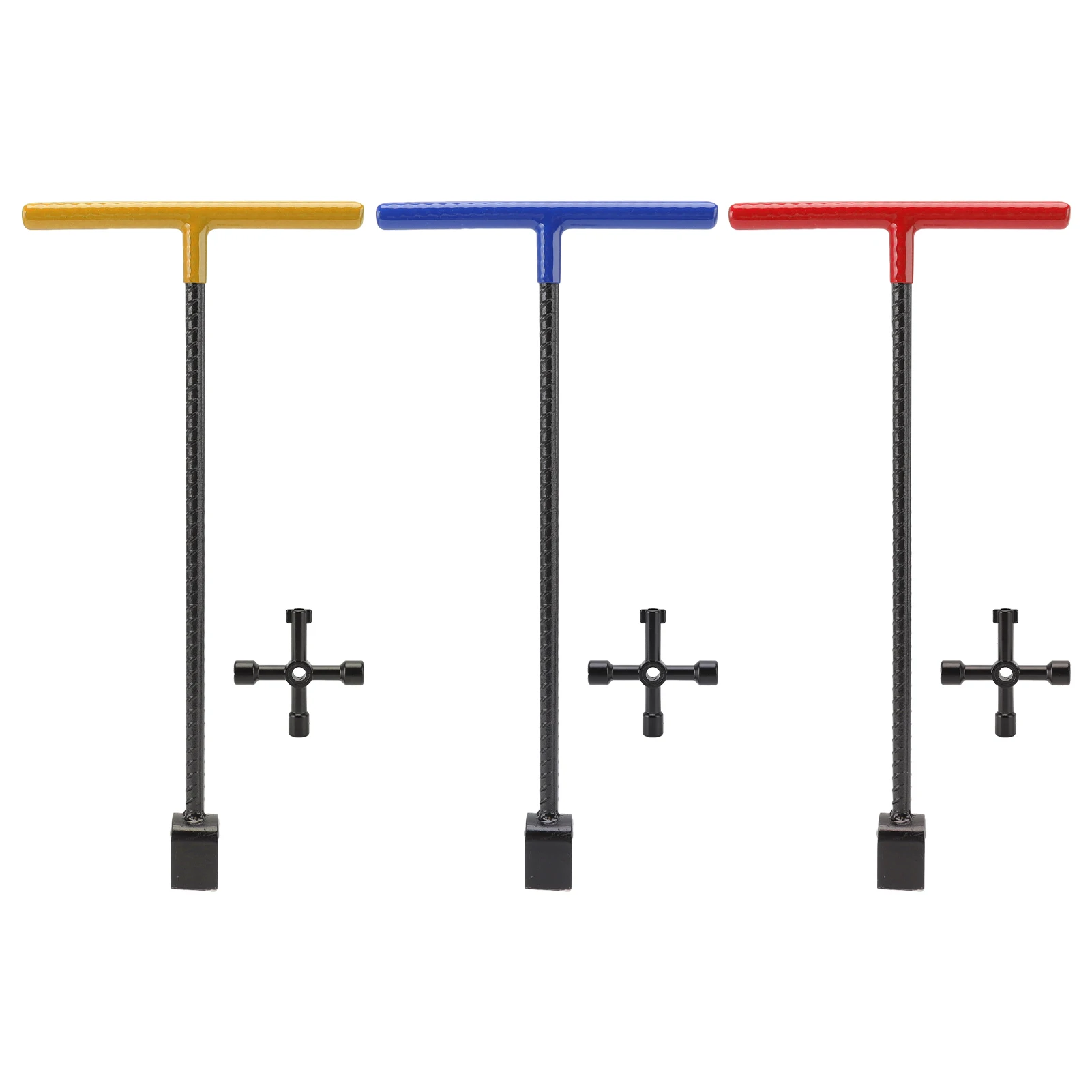 4-Way T-Handle Curb Key Wrench, Heavy Duty Steel Water Meter & Valve Key Tool for Outdoor Faucets, Utility Boxes, and Irrigation