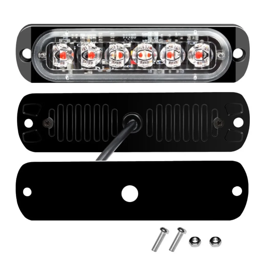 2pcs 24V 12V LED Strobe Warning Light, 6SMD Strobe Grille Light Bar, Amber Yellow White Flashing Beacon for RV Truck Car Traffic