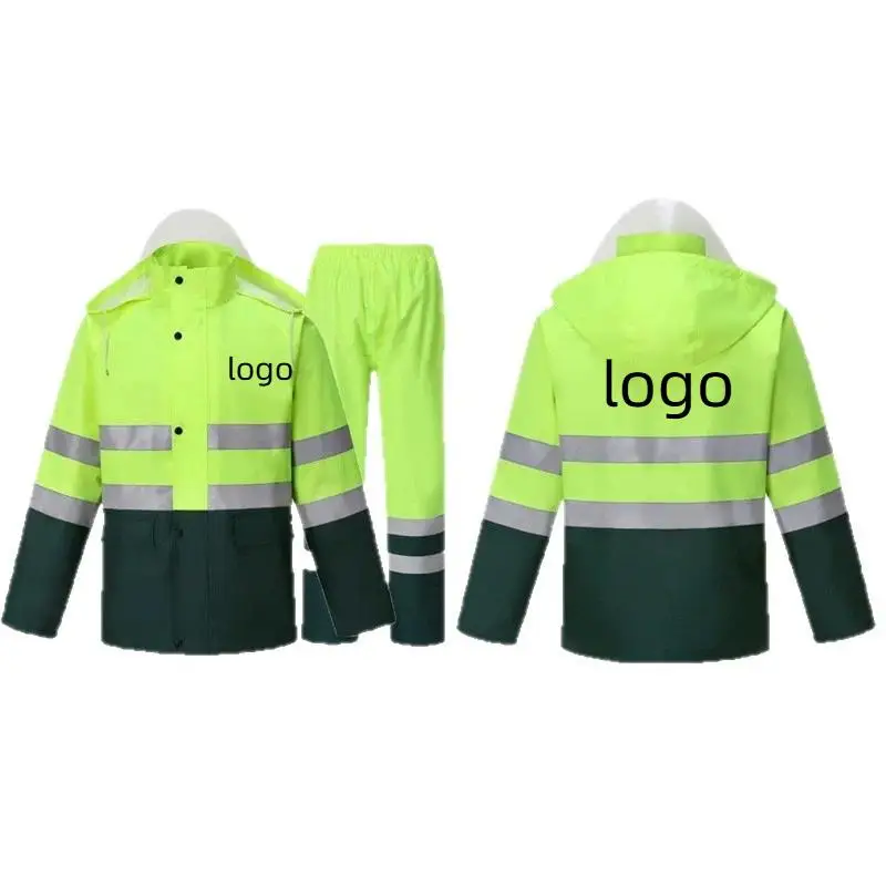 Reflective Raincoat Rain Pants Suit Personalization Patrol Split Safety Waterproof Poncho Rain Gear Raincoat Customized Logo