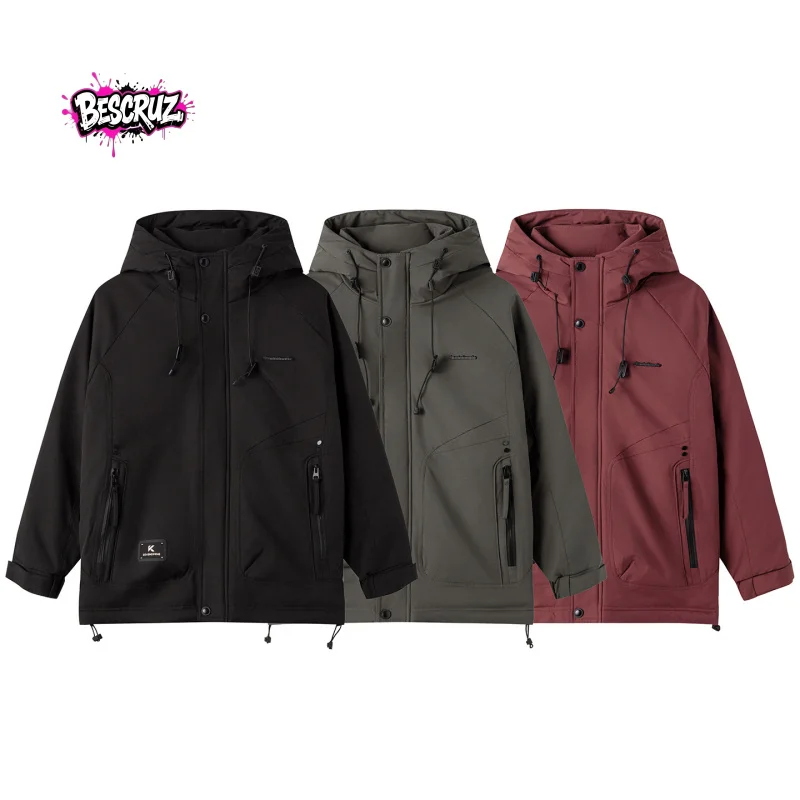 BESCRUZ 2025 Winter New Outdoor Hooded Down Jacket Men's Trendy Brand Workwear Coat Warm Thick Top