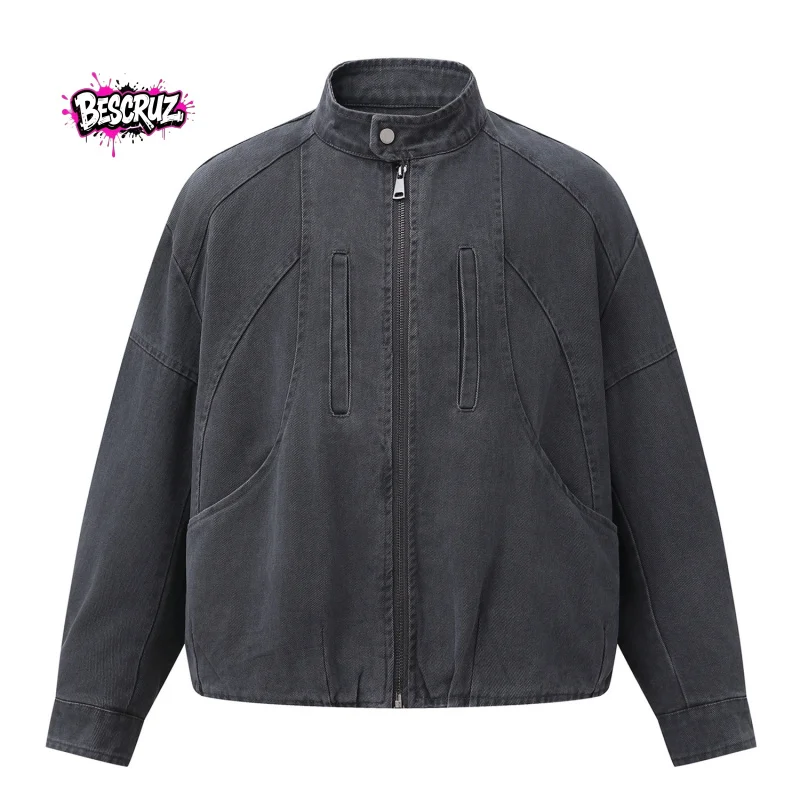 BESCRUZ High Quality EU US Size Vintage Multi-Pocket Patchwork Stand Collar Workwear Jacket