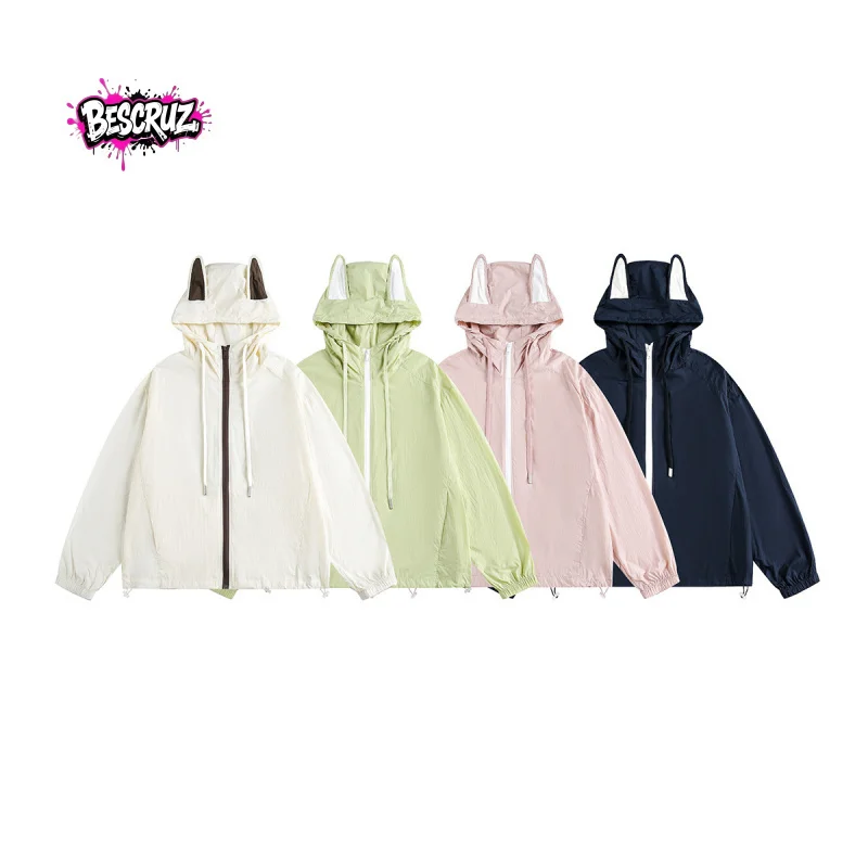 BESCRUZ High Quality EU US Size Spring New Ear Decoration Drawstring Hooded Jacket Men's Trendy Brand Thin Workwear Jacket