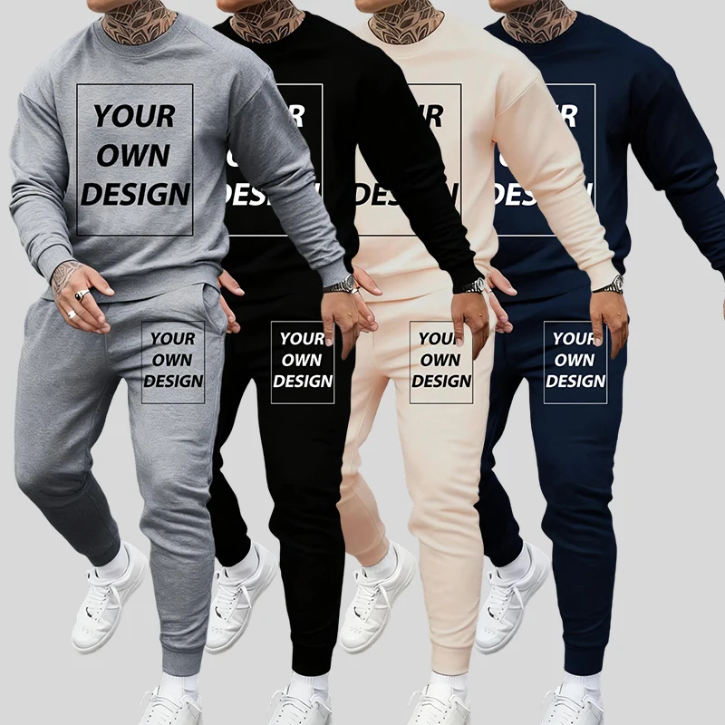 Customized Print Man Autumn Sport Sweatshirts 2 Piece Set Basics Street Clothing Comfy Fleece Pullovers Pocket Drawstring Pants