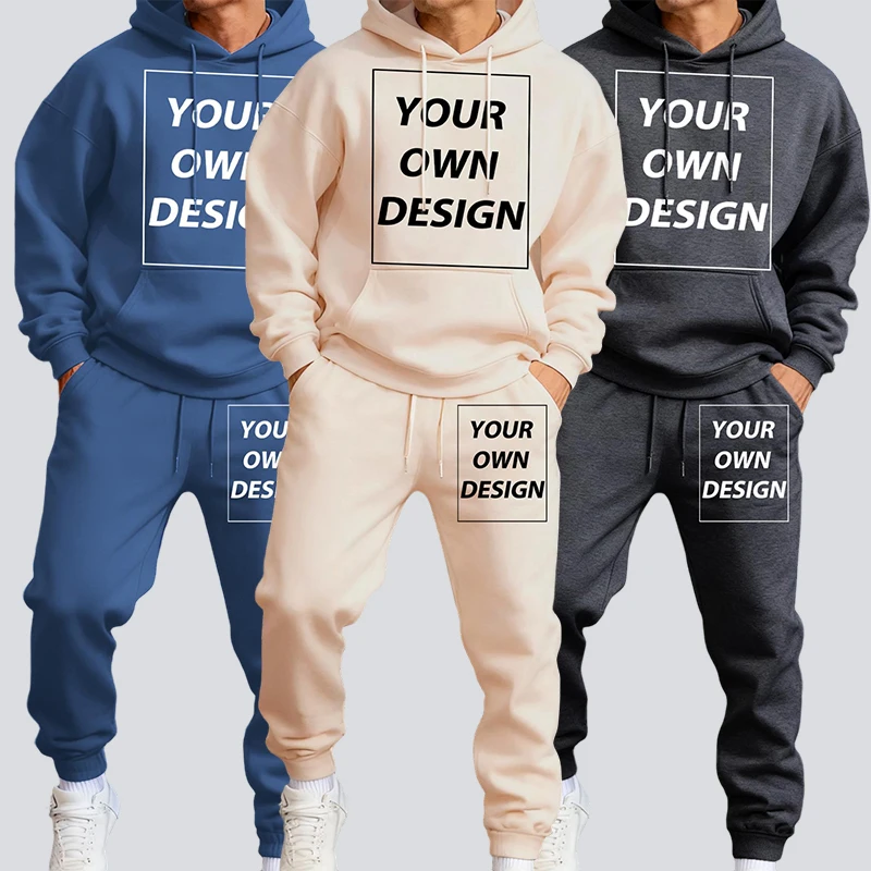 Autumn Customized Your Own Design Hoody Sweatpants Men's Sets Casual Street Clothing Comfy Soft Sportswears Basic Fleece Tops