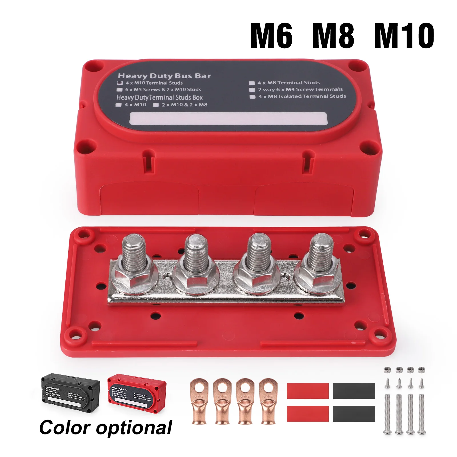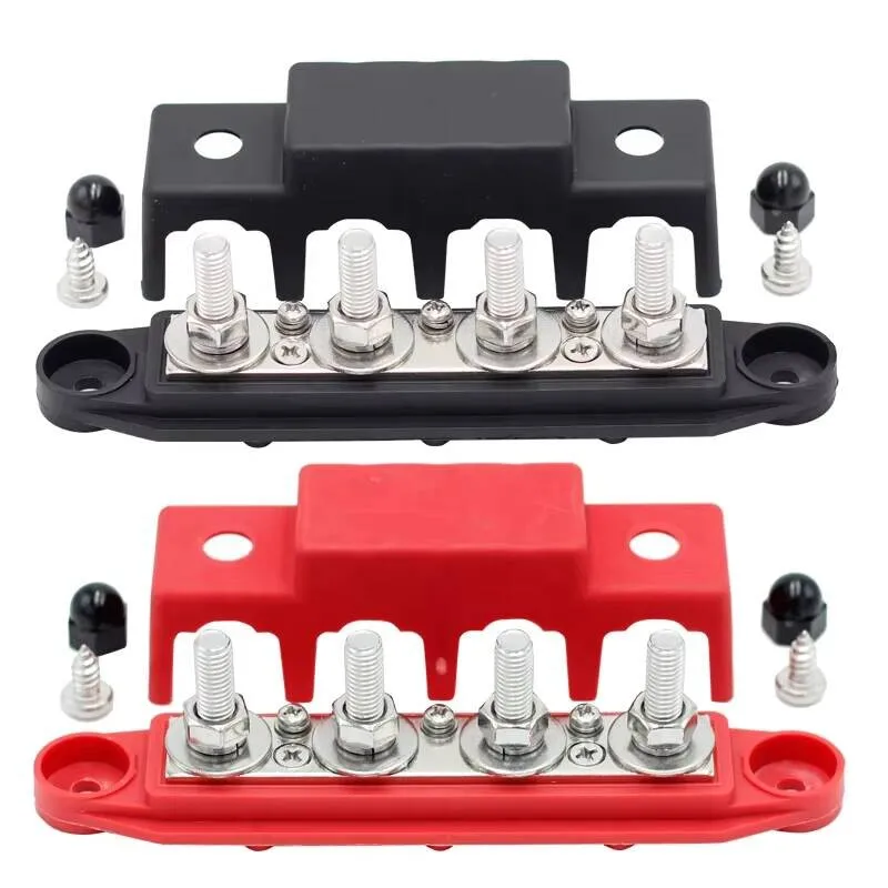 Power Distribution Block Module Heavy Duty Bus Bar 4 Studs Single Row 12-48V Copper Nickel Nylon M6 M8 M10 For Truck Car Boat
