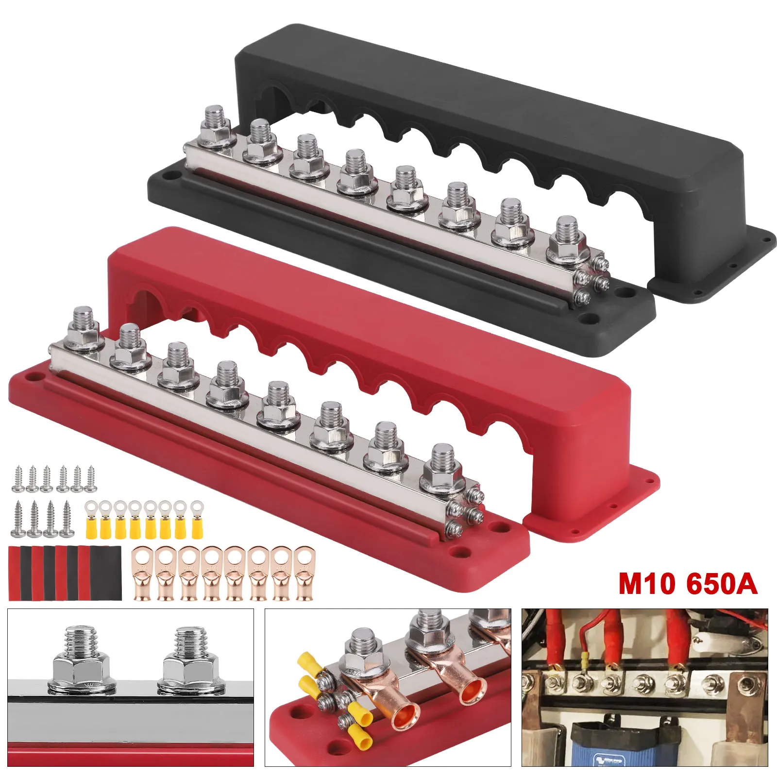 24V 600A Terminal Block 24V Power Distribution Block M10 Termianl Bus for Automotive Boat Car Terminal Block Negative Bus Bar