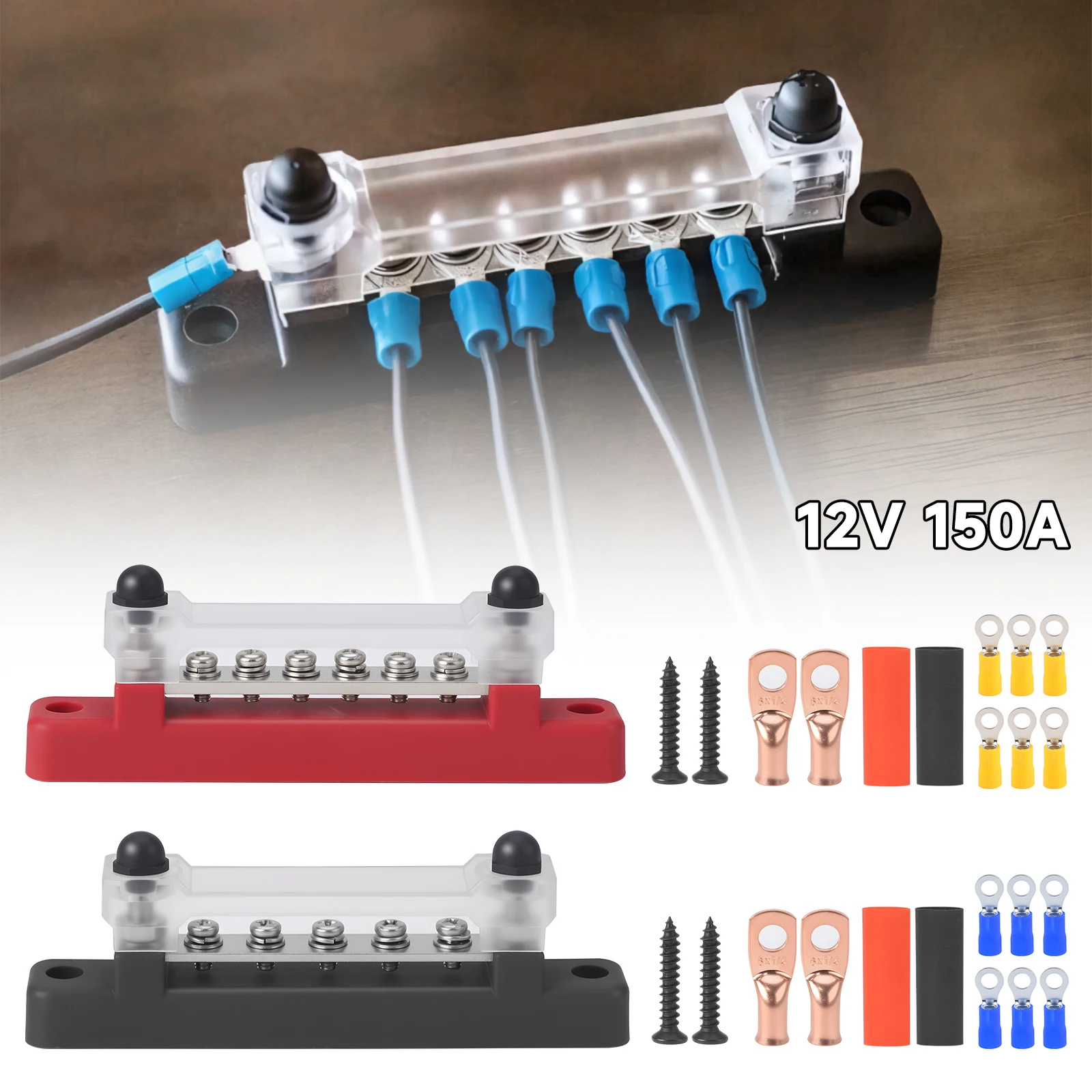 5/6 Way M4 BusBar Terminal Battery Power Distribution Block Terminal Studs M6 Connector 48V 150A DC 300V 130A AC For Car RV Boat