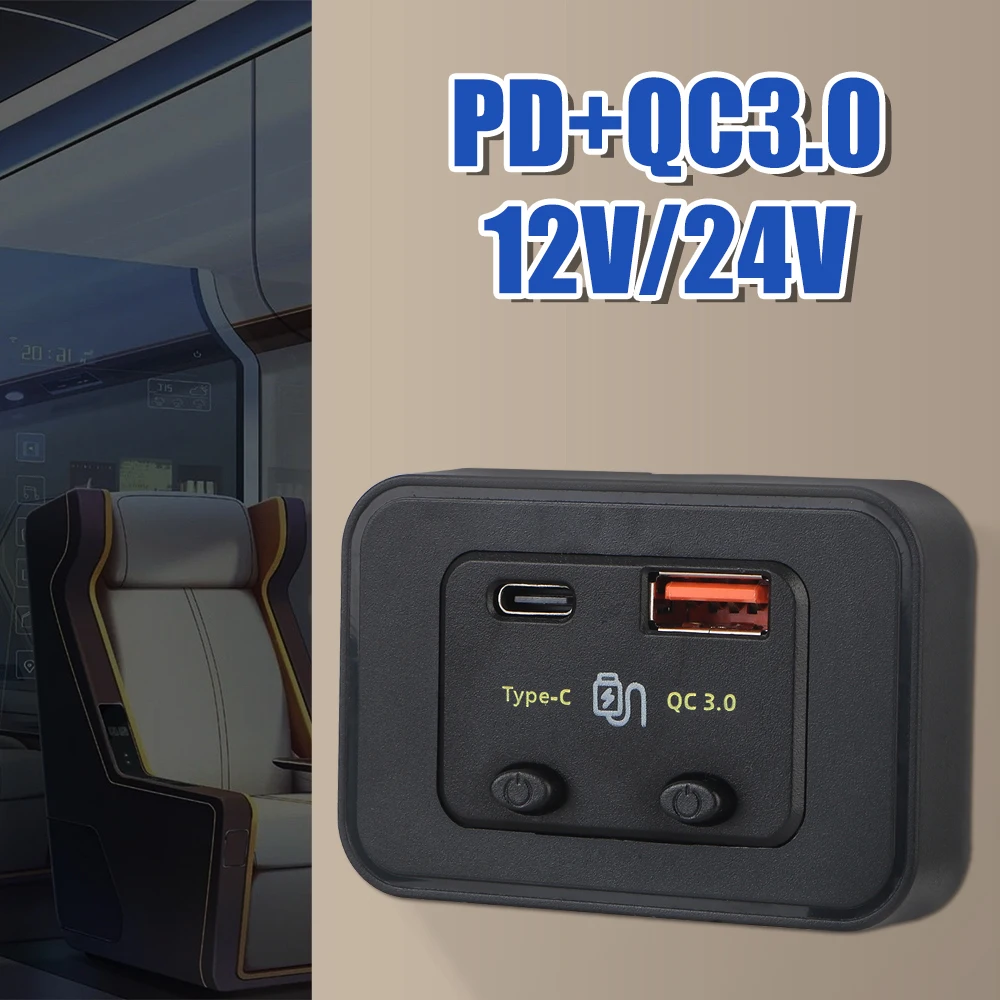 For Car RV RV Home Camper Caravans Auto Adapter Type C + QC3.0 USB A Port 12V/24V Phone Charger Car Fast Charger LED Light
