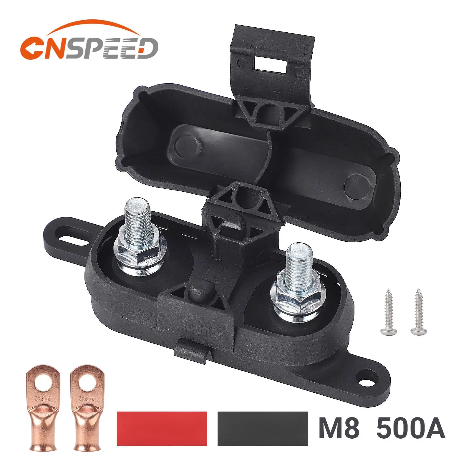 CNSPEED HMEG Fuse Block/Holder Base with Black Cover Plastic M8 For Car RV Boat For 500A 8 to 2 AWG Hight AMG Bolt On Auto Fuses