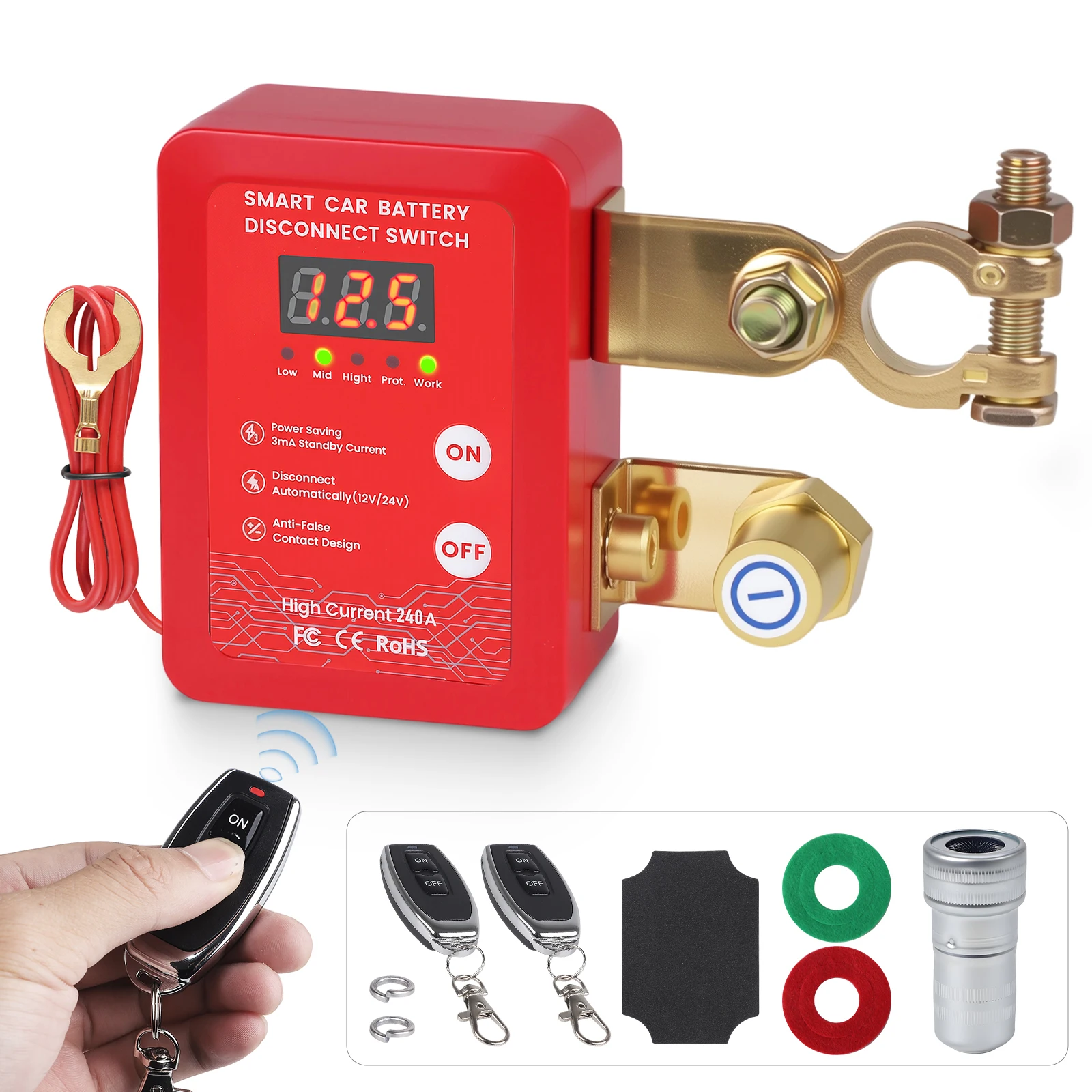 12v 240A Car Kill Switch Anti-Theft Remote Battery Disconnect Switch set with Led Voltage Display Smart Voltage for Car Truck RV