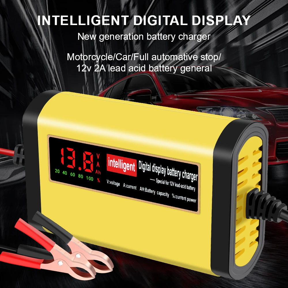 Car Battery Charger 3 Stages Lead Acid AGM GEL Battery-chargers 2A Intelligent Fast Power Charging