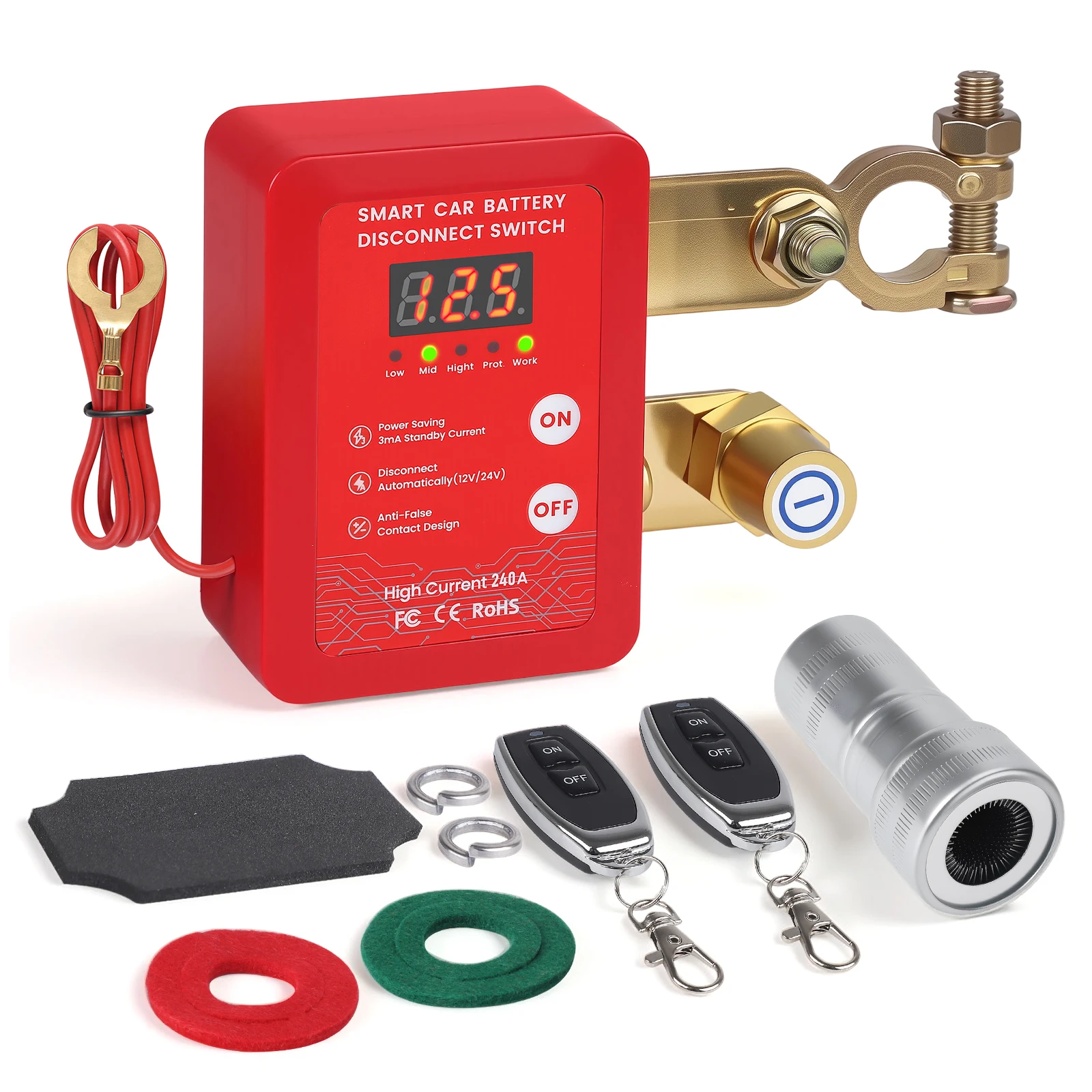 Car Kill Switch Anti-Theft Remote Battery Disconnect Switch set 12v 240A with Led Voltage Display Smart Voltage for Car Truck RV