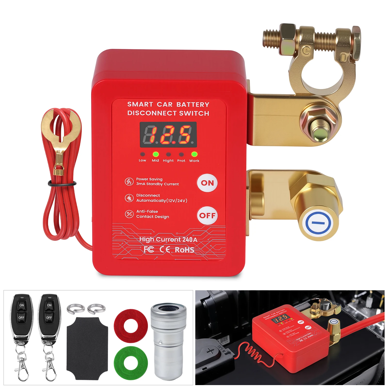 240A 12V Remote Battery Disconnect Switch with Led Voltage Display Automatic Power Shut Off Switch Anti Auto Car Truck Boa