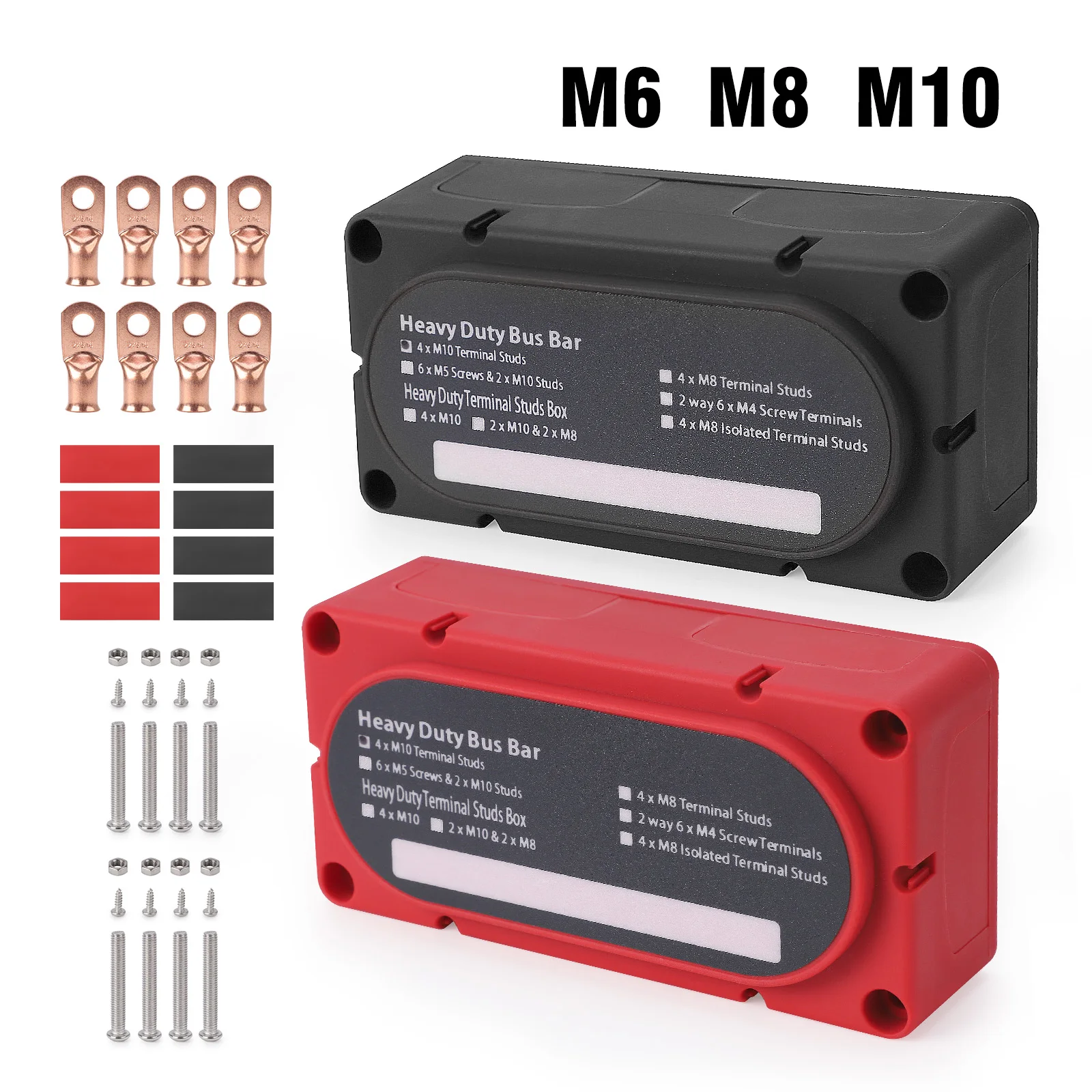 CNSPEED Heavy Duty Bus Bar Power Distribution Block 4 Studs Single Row 12-48V Copper Nickel Nylon M6 M8 M10 For Truck Car Boat