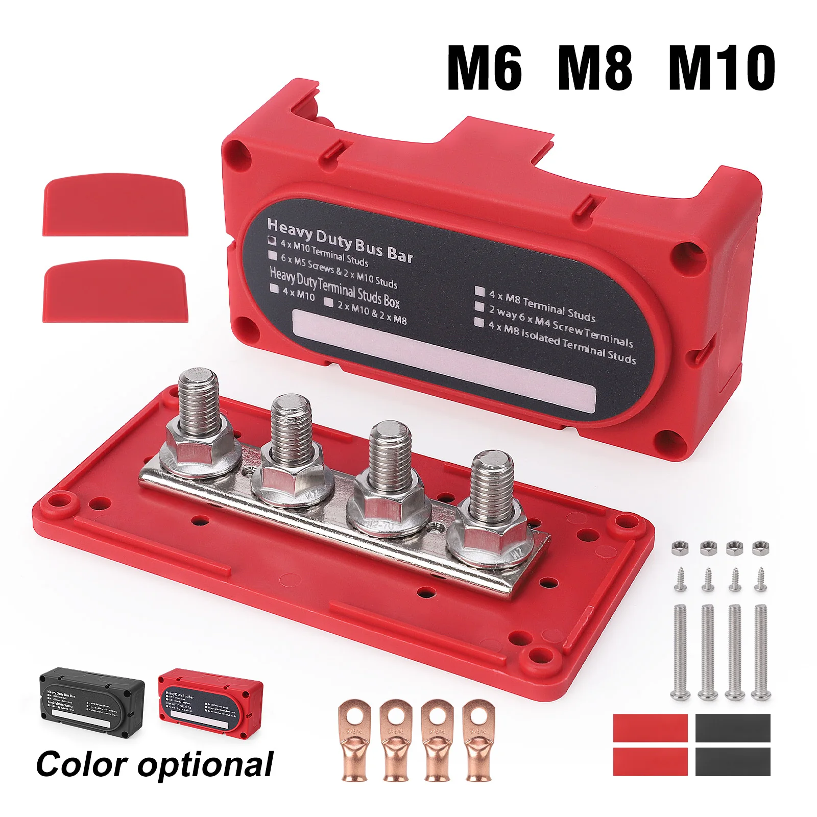 New Boat Bus Bar Power Distribution Block Module 4 Studs Single Row 12-48V Copper Nickel Nylon M6 M8 M10 For Truck Car Vehicle