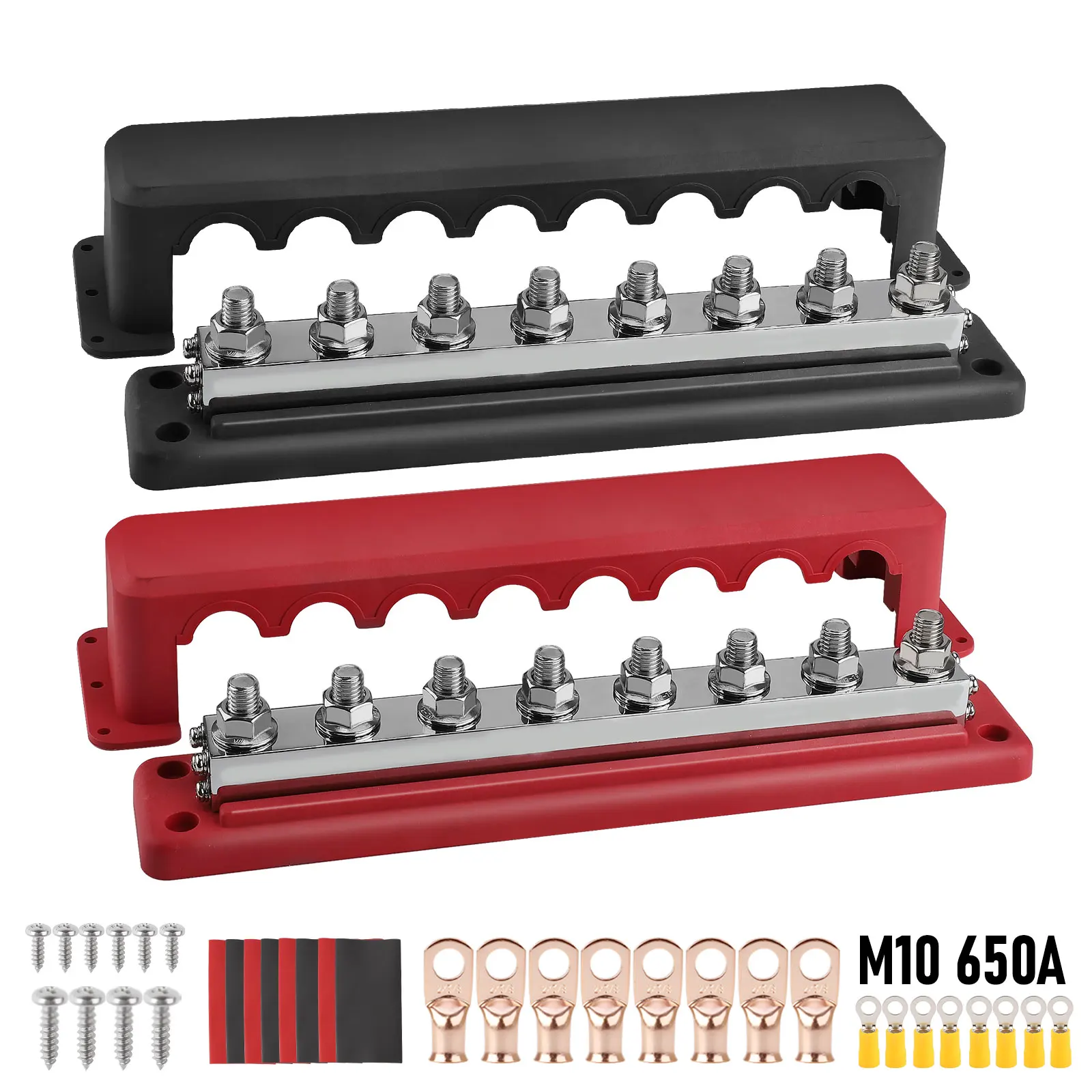 24V 600A Terminal Block 3/8" Power Distribution Block M10 Termianl Bus for Automotive Boat 8 Post Power Distribution Block M10