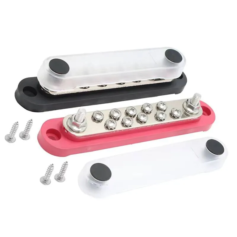 8 Way Bus Bars 100A 48V #8-32 Terminals Distribution Block With Cover Wiring Busbars