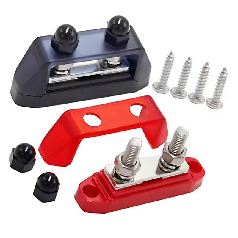 M8 250A 12V-48VDC 2 Stud 5/16" Male And Female Battery Block Bus Bars Terminal For Marine Auto Boat Solar System