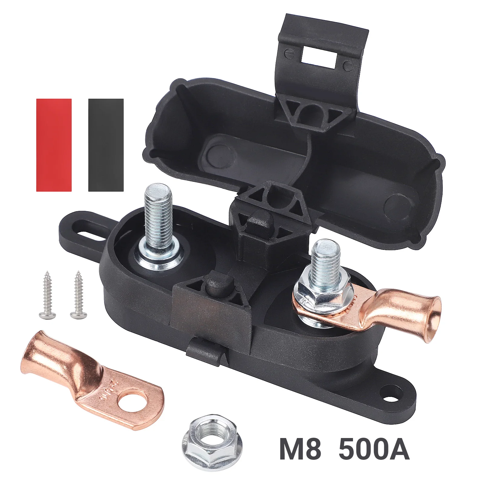 Insurance Base HMEG Fuse Block/Holder with Cover For Car RV Boat Circuit Protector For 8 to 2 AWG Stud M8 Hight AMG Bolt On Fuse