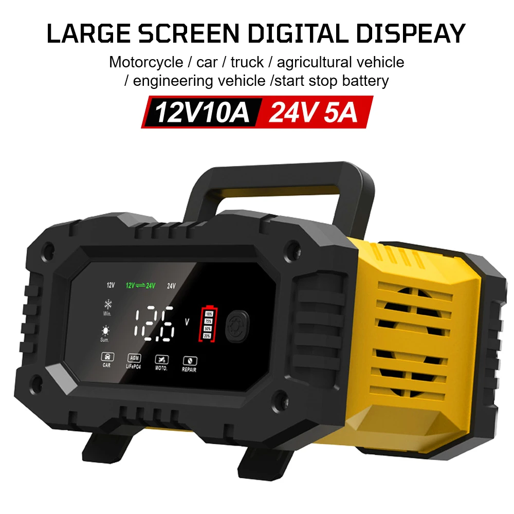 7-stage Car Motorcycle Battery Charger Handheld Smart Battey Charger For AGM GEL SLA Lead-Acid LiFePO4 12V-24V