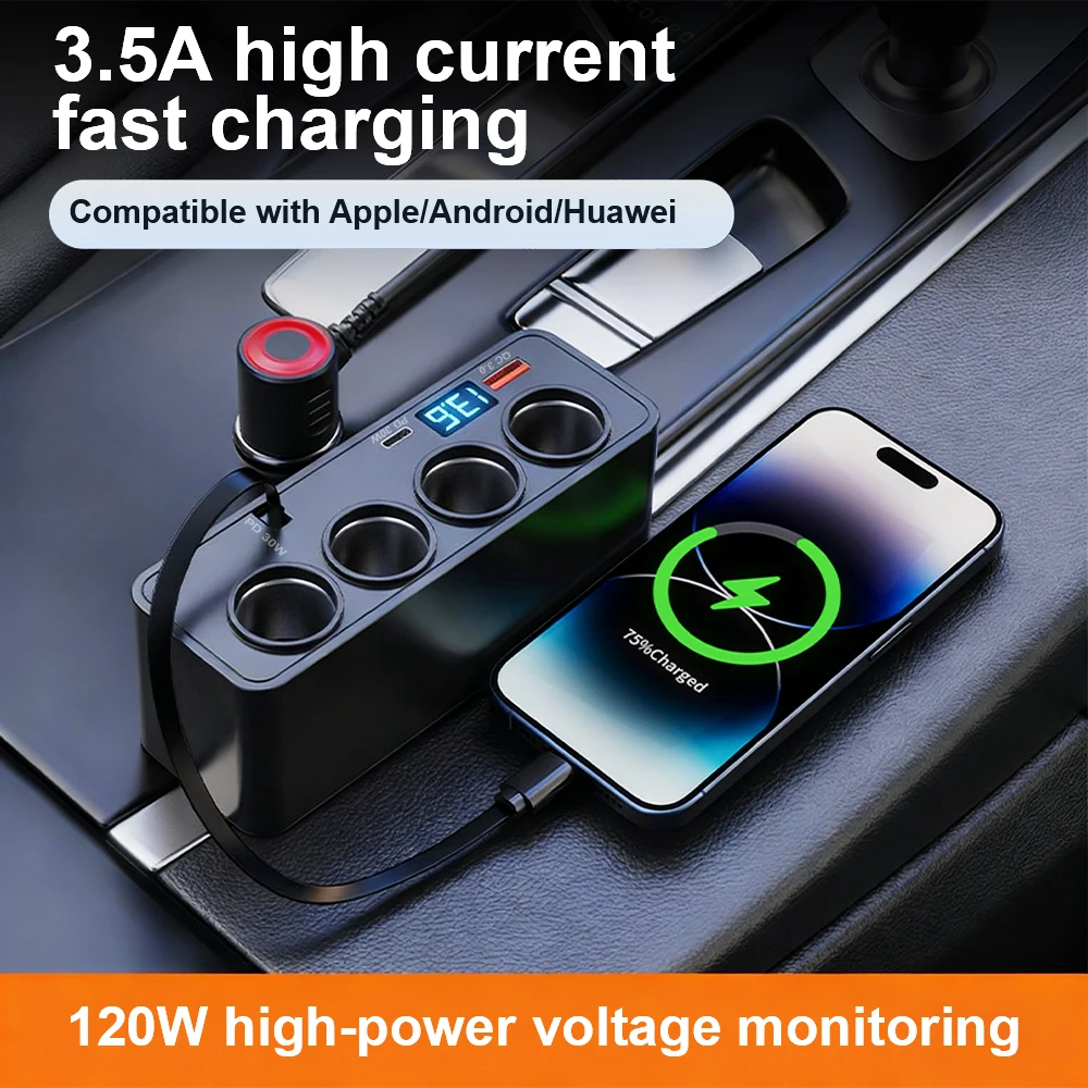 USB Fast Charging Car Digital Display Vehicle Charger Multifunctional Auto Charger Adapter QC3.0+PD TypeC Universal Quick Charge