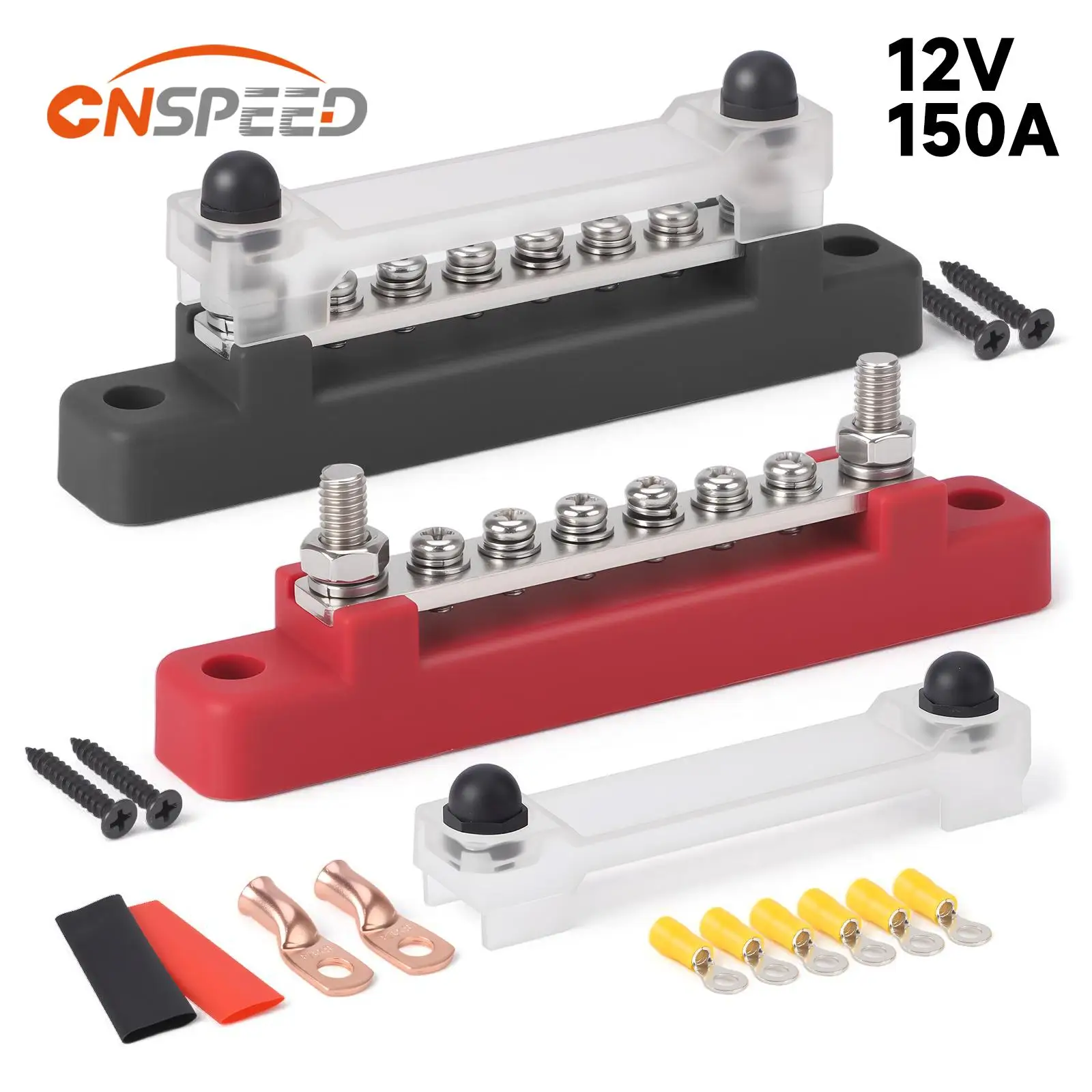 5/6 Way M4 BusBar Terminal Battery Power Distribution Block 48V 150A DC 300V 130A AC Terminal Studs M6 Connector For Car RV Boat