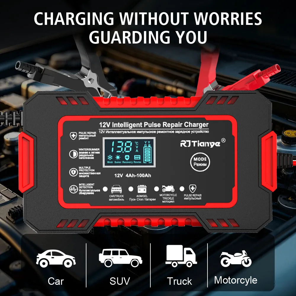 12V 6A Full Automatic Car Battery Charger For Auto Moto Wet Dry Lead Acid AGM Gel Power Pulse Repair Quick Charge