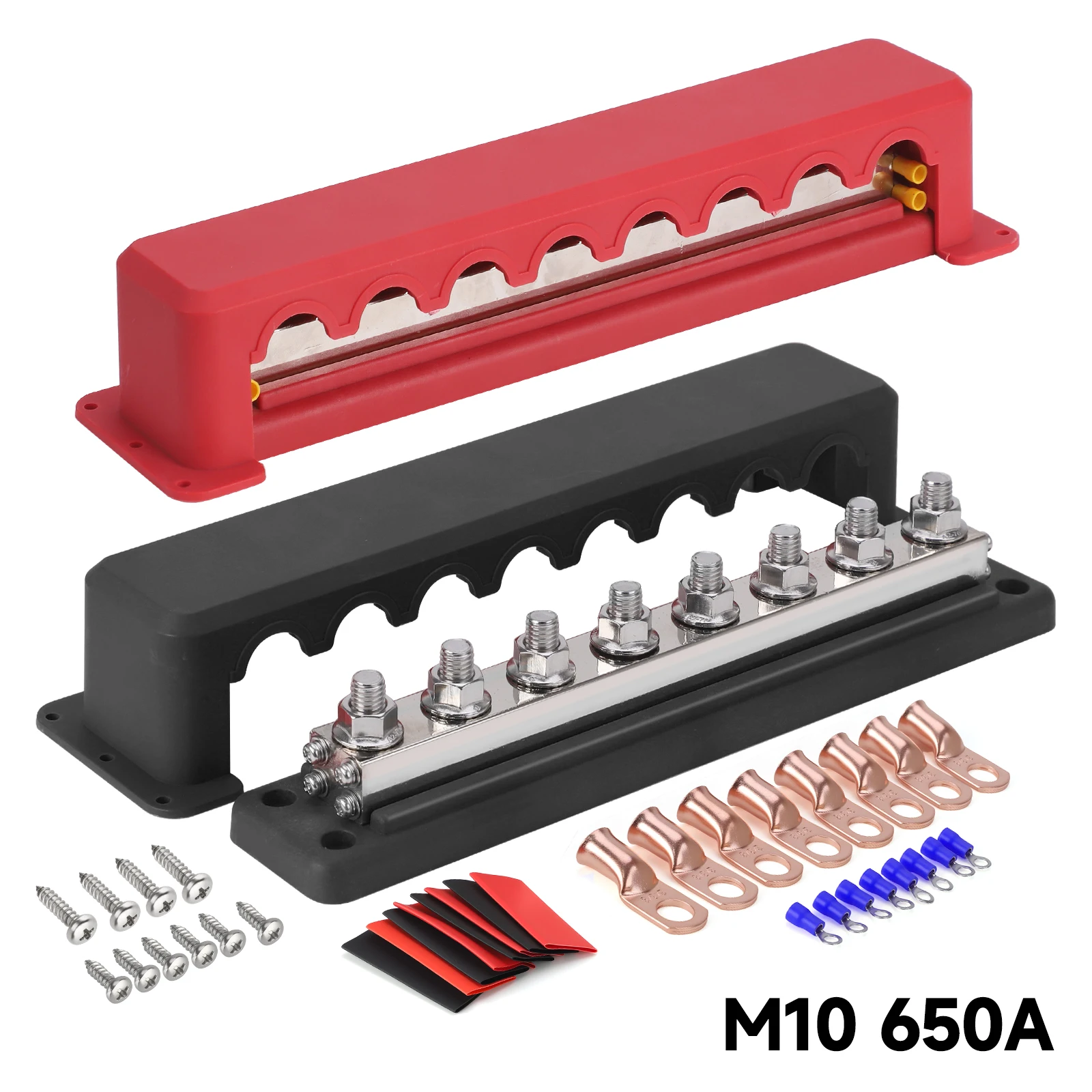 600AHeavy-Duty Bus Bar Nickel Plated Copper Distribution Terminal Bloc 8 Post Power Distribution Block M10 with Cover Heavy Duty