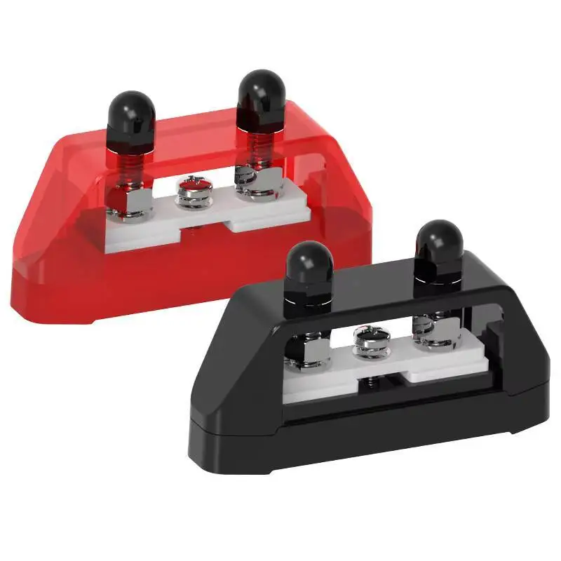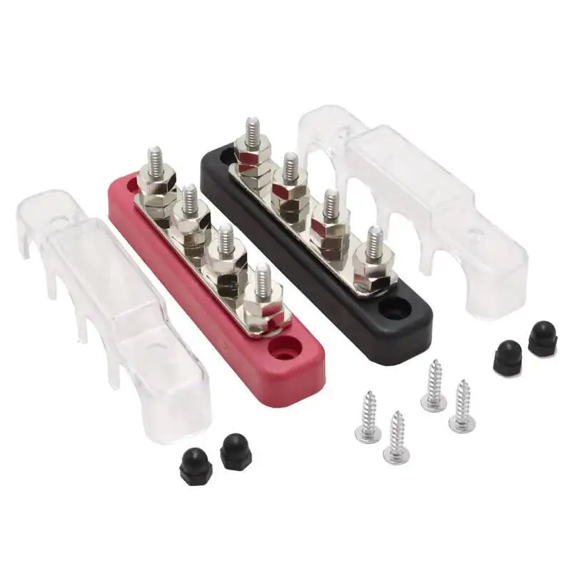 Red Heavy Duty 48V 150A 4Way M4 Black Terminal Blocks Copper Bus Bar With High Power Distribution Capability For Car Boat