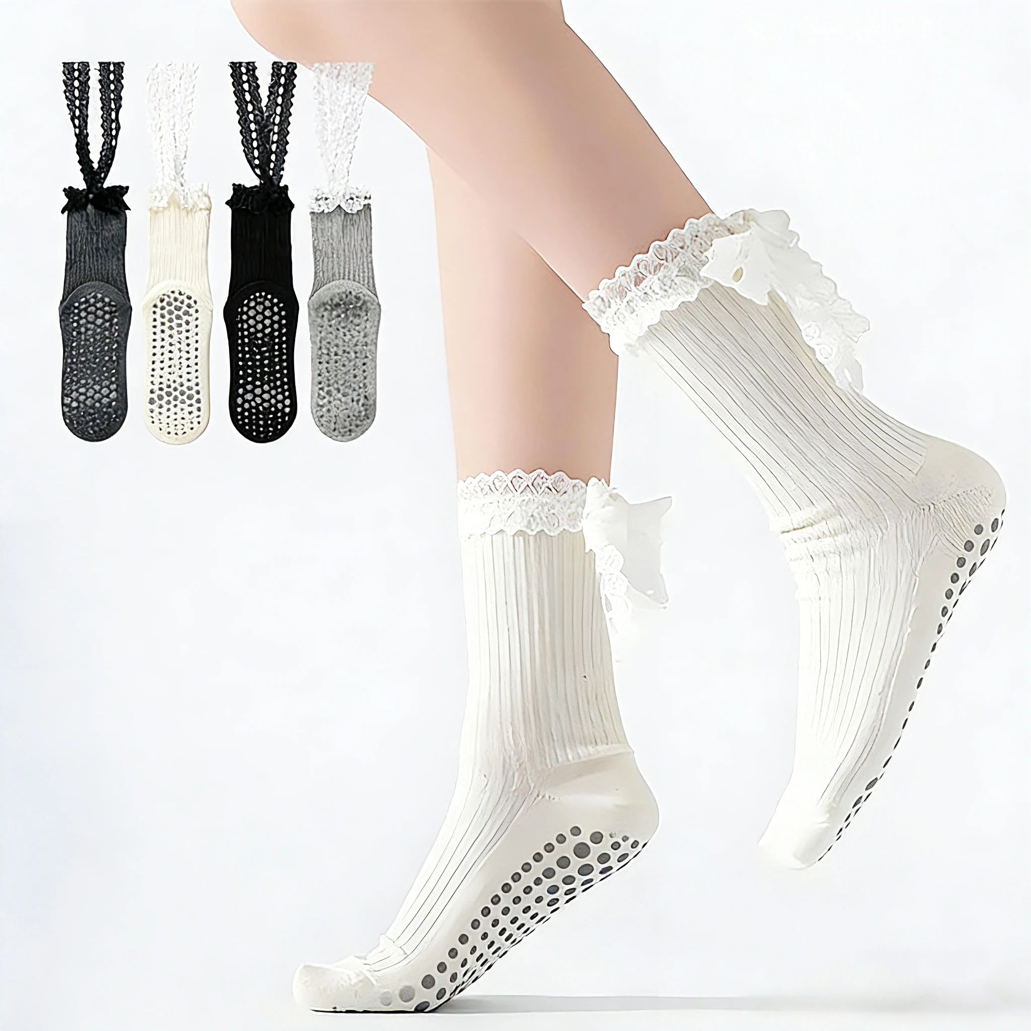 Dreamlikelin 1 Pair Lace-Up Non-Slip Yoga Socks for Women, Mid-Calf Fitness Floor Socks, Adult Anti-Slip Socks for Pilates