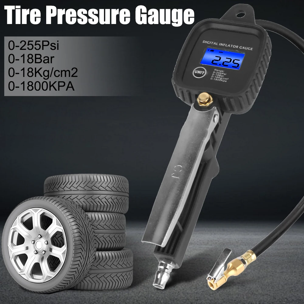 With Inflator Hose Car Tire Manometro Car Tire Pressure Gauge Digital Inflator Gauge High-precision Monitoring Inflation Gun
