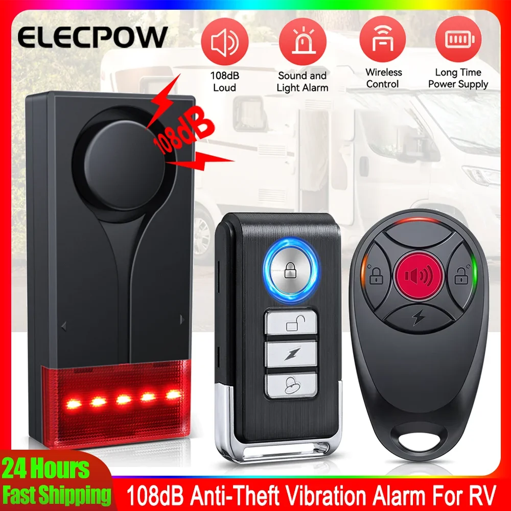 Elecpow 108dB Anti-Theft Vibration Alarm For RV Wireless Remote Car Sound & Light Alarm System Vehicle Security Alarm Light