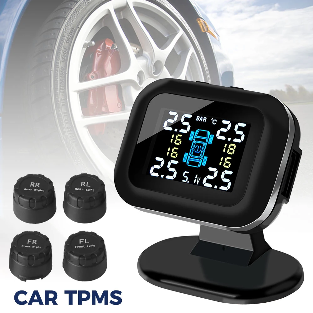Mini Car Tire Pressure Monitoring System Auto Security Alarm Systems LCD Display With 4 Pcs External Sensor USB TPMS