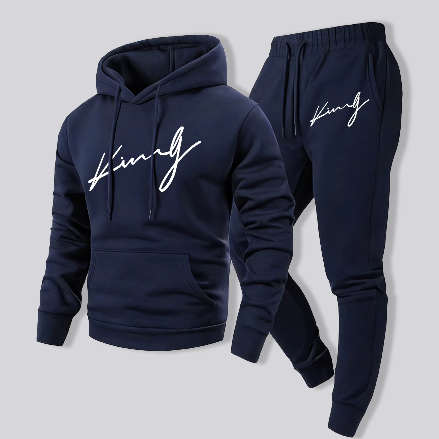 Ensemble de survêtement décontracté en molleton pour homme avec motif calligraphique idéal pour l'automne, chaud et confortable
