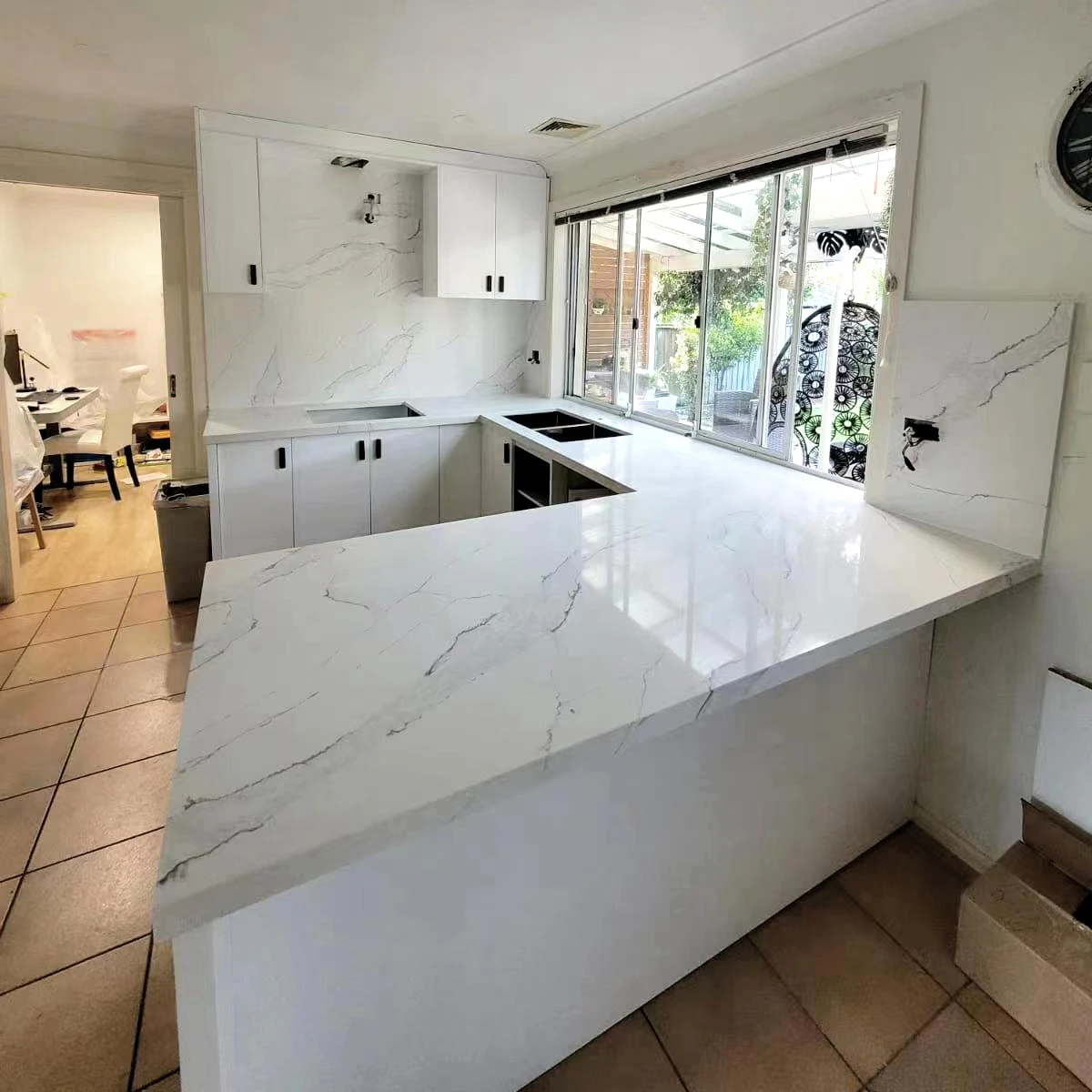 Milan White Marble Flat Stone Custom CE Modern Kitchen Decoration Platinum Kitchen Countertops