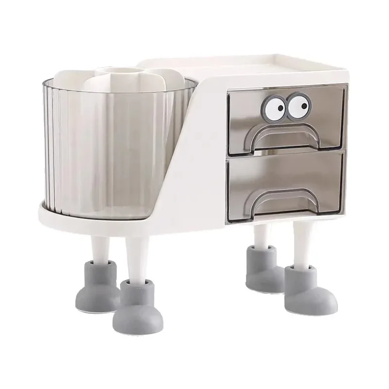 Rotary Dual-function Pen Holder, Storage Box with Drawers, Plastic Pen Holder, Cosmetic Storage Box.
