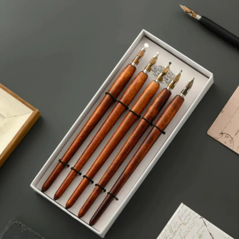 Retro Wooden Refill, Pack of 5, Antique Calligraphy Style, Writing Instruments, Total 5 Pcs