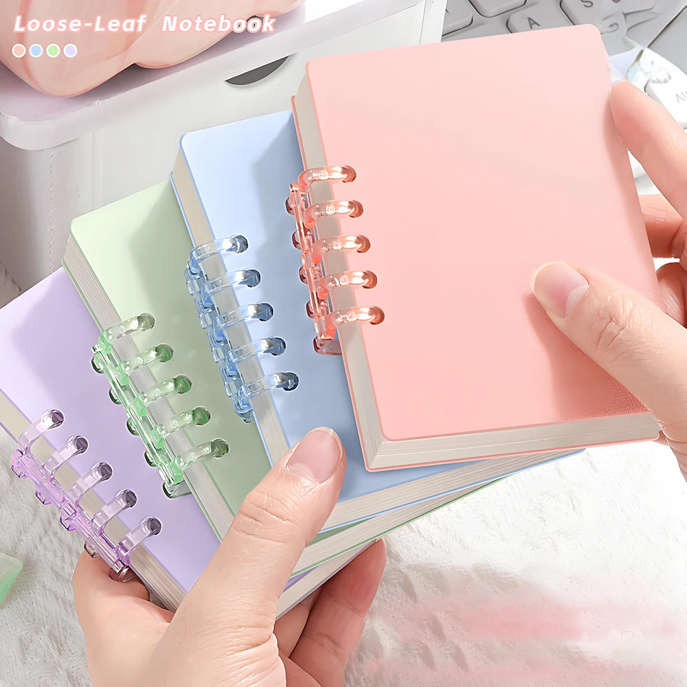 Pocket Size Loose-leaf Notebook Hardcover A7 80 Sheet Horizontal Lined Binder Ring Notebook School Office Supplies Stationery