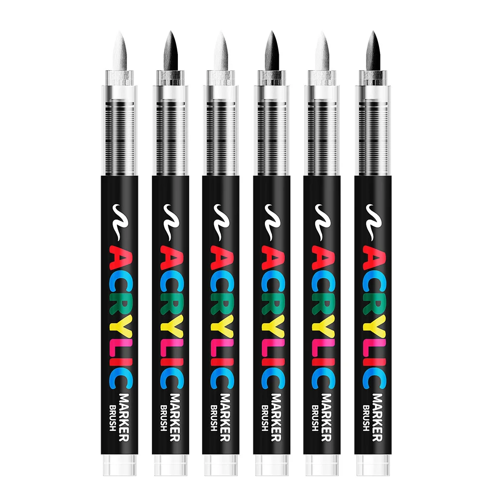 6Pcs/set Black Acrylic Paint Pen for Rock Painting, Stone, Ceramic, Glass, Wood, Tire, Fabric Metal, Canvas